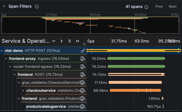 2Vérifie dans ton outil de visualisation (Jaeger, Grafana) les traces collectées. Tu devrais y voir le chemin complet des requêtes, les latences et les erreurs potentielles.